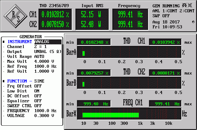 Distorsion relevée à puissance nominale sous 8 ohms.