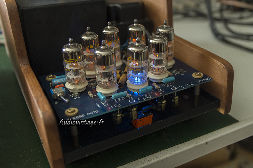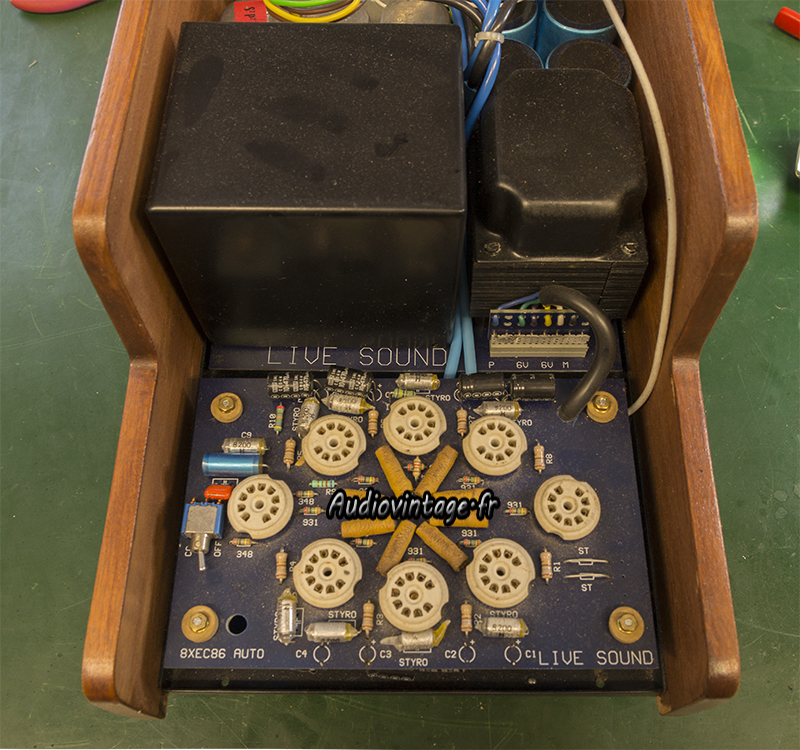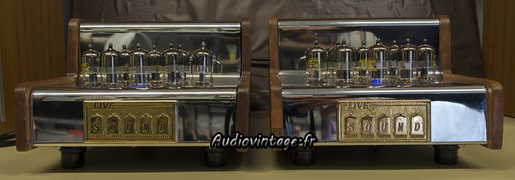 Aujourd’hui, deux blocs mono à tubes peu commun, des Live Sound cristal, équipés de 8 tubes EC86.