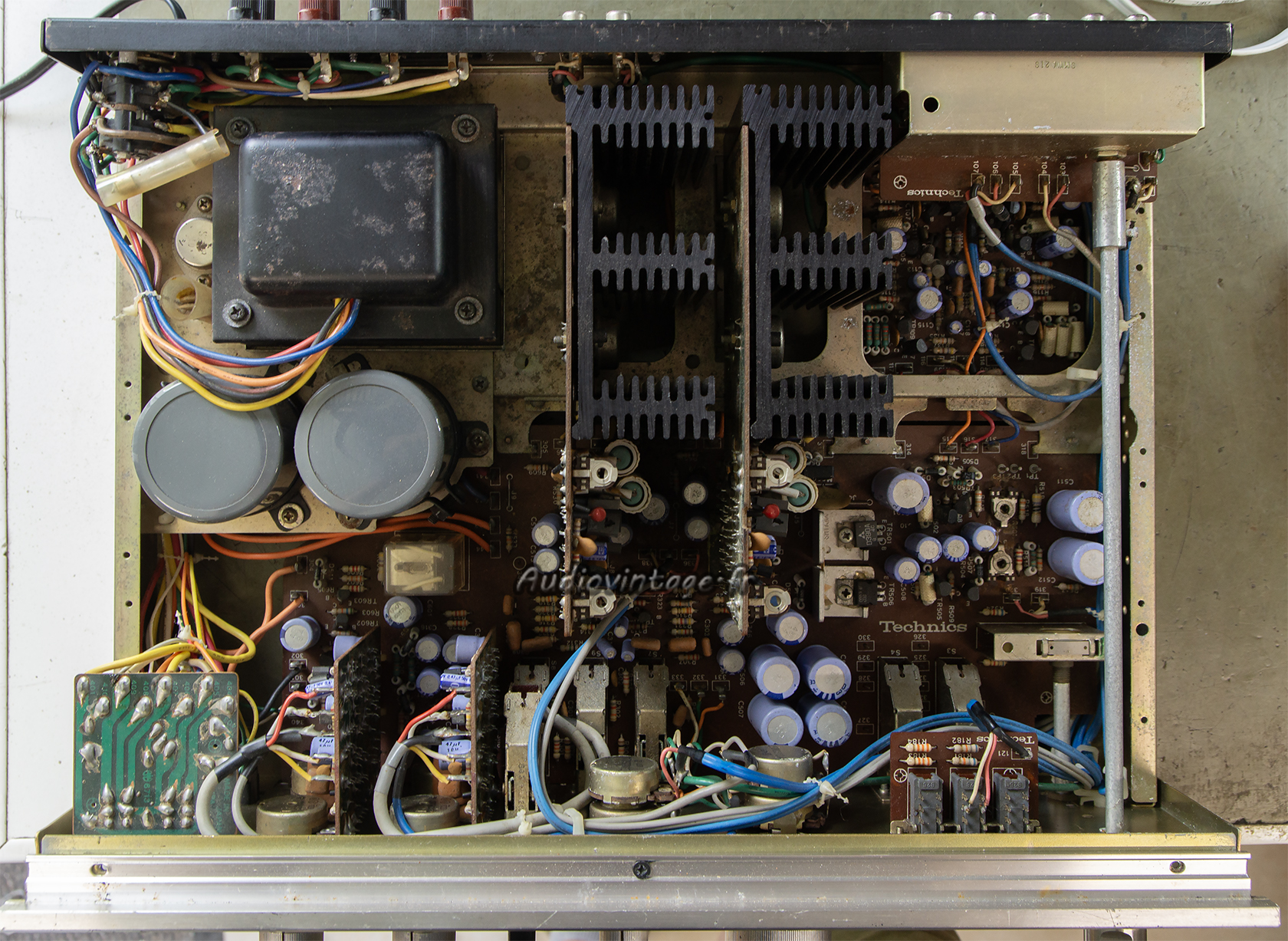 Un joli Technics SU-3500 à l’atelier. Il est beau certes, mais il est en panne et bien « rincé ».