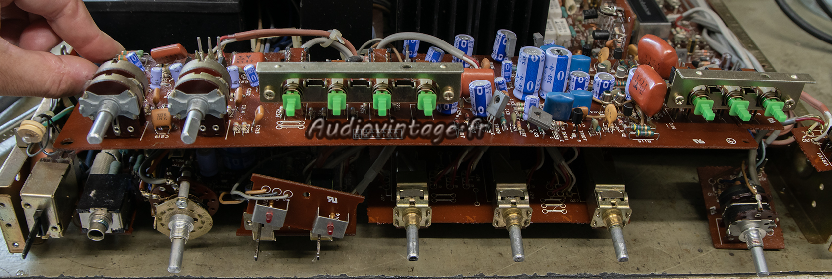 Ce modèle à habituellement des soucis de contacts dans les commandes « main amp » et des trois sélecteurs à leur droite.