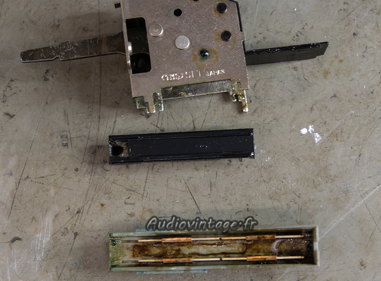Voici l’état d’une des cinq commandes à nettoyer. Dans cet état, il est même surprenant que l’appareil puisse encore diffuser quoi que ce soit…