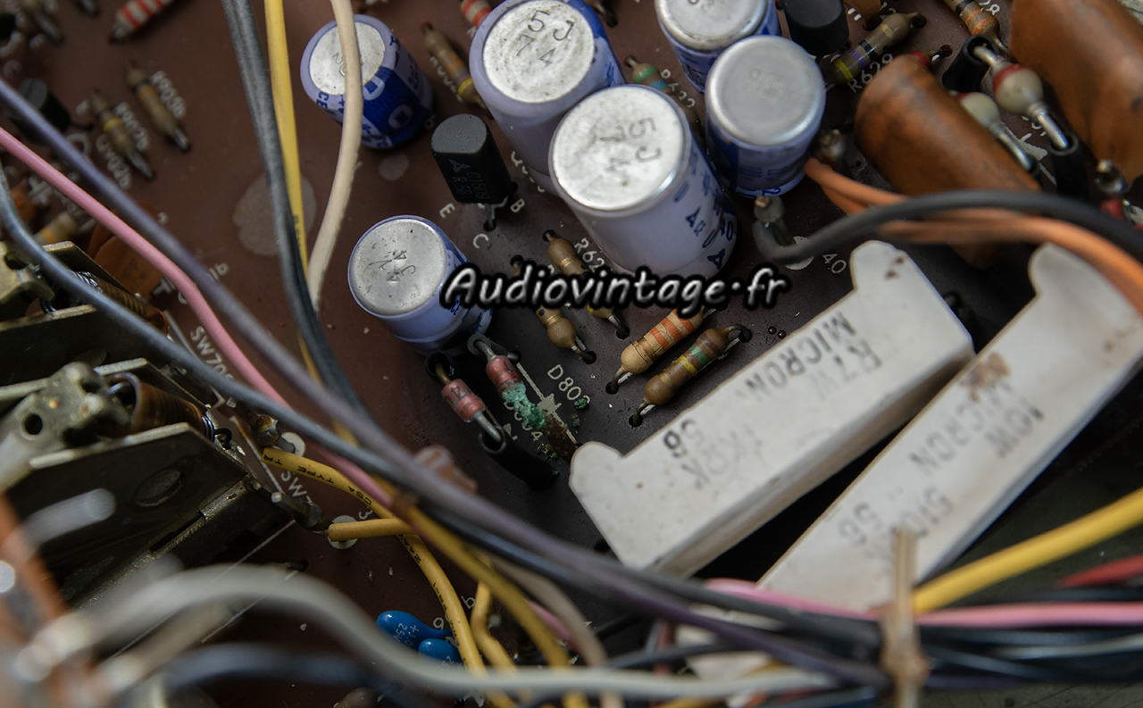 J’ai également remplacé de nombreux condensateurs chimiques, une diode Zener fatiguée ainsi qu’une douzaine de transistors petits signaux qui deviennent problématiques avec l’âge.