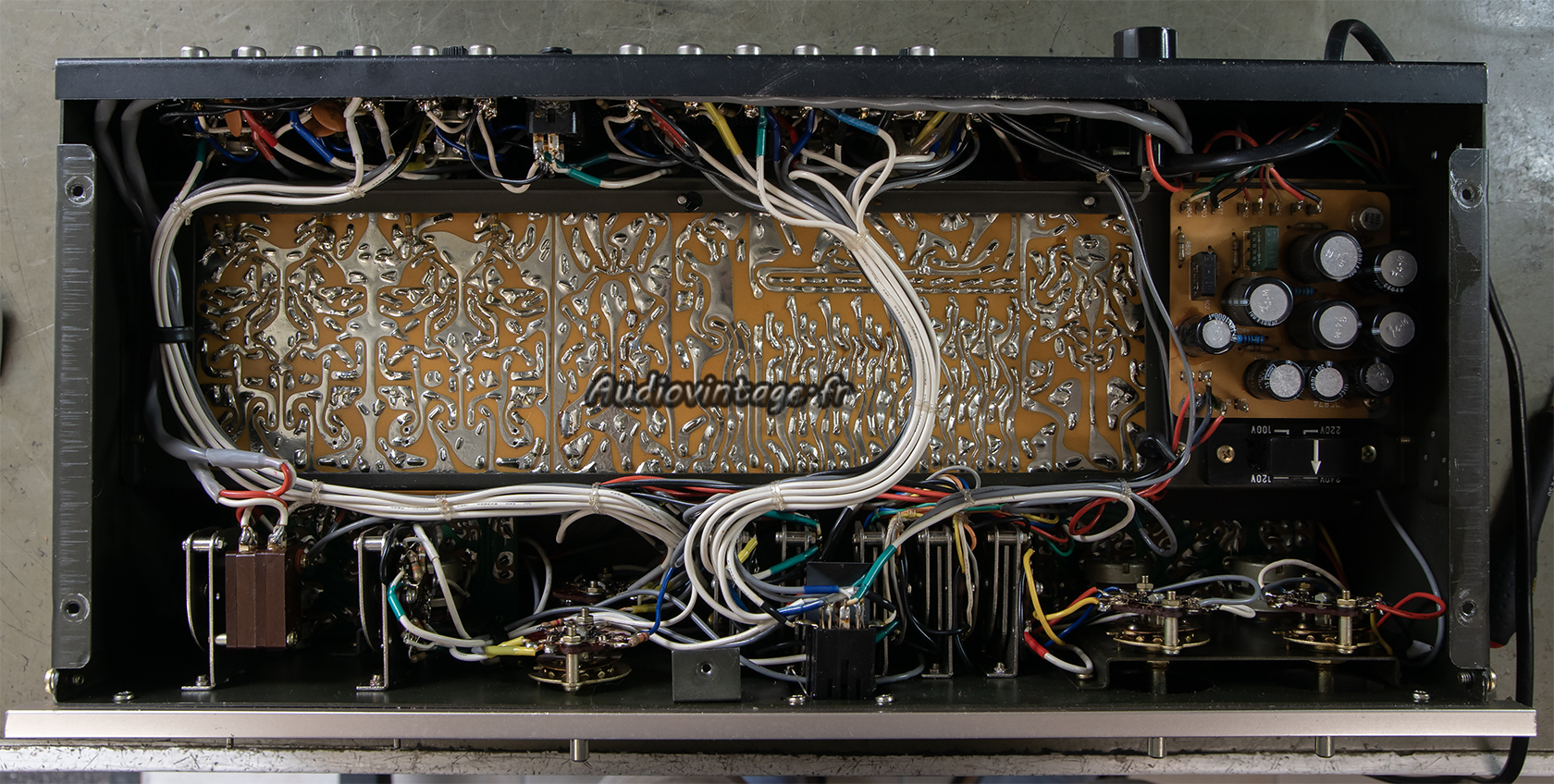 Comme d nombreux appareil de cette génération et particulièrement les préamplificateurs Luxman, il est farci d transistors qui deviennent problématiques avec l’âge et de condensateurs chimiques pas très frais, particulièrement les tantales.