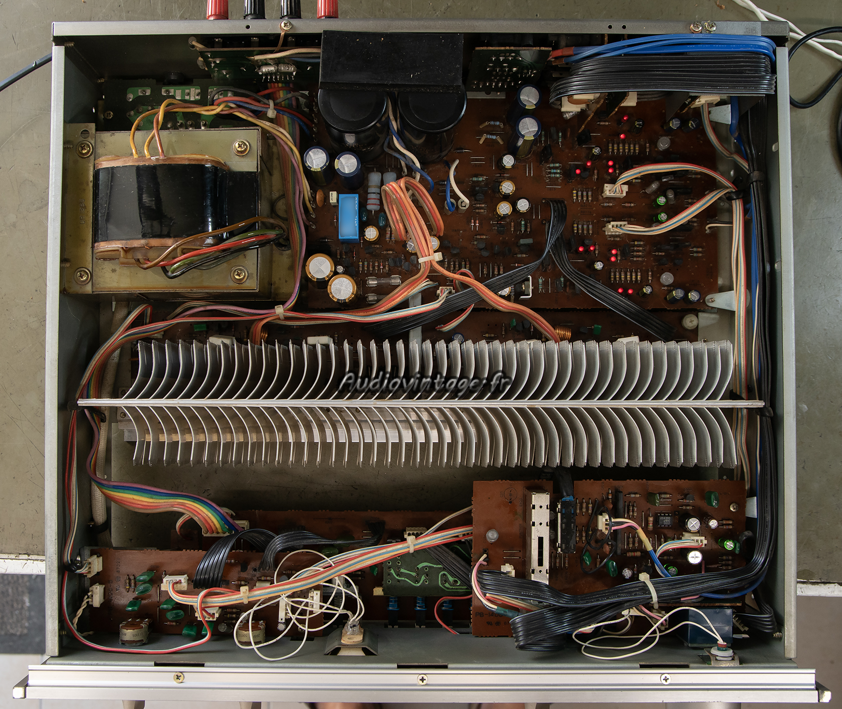 Tous les condensateurs chimiques (autres que les deux condensateurs de filtrage) ont été remplacés, toute comme le relais de protection haut-parleur.