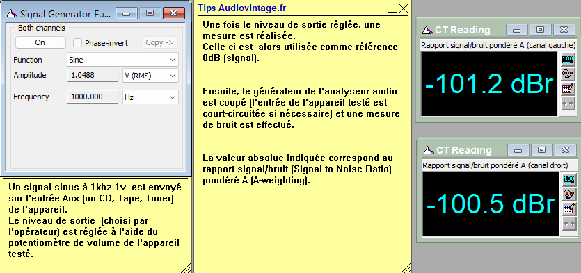 Rapport signal bruit à 1v en sortie, entrée tuner.