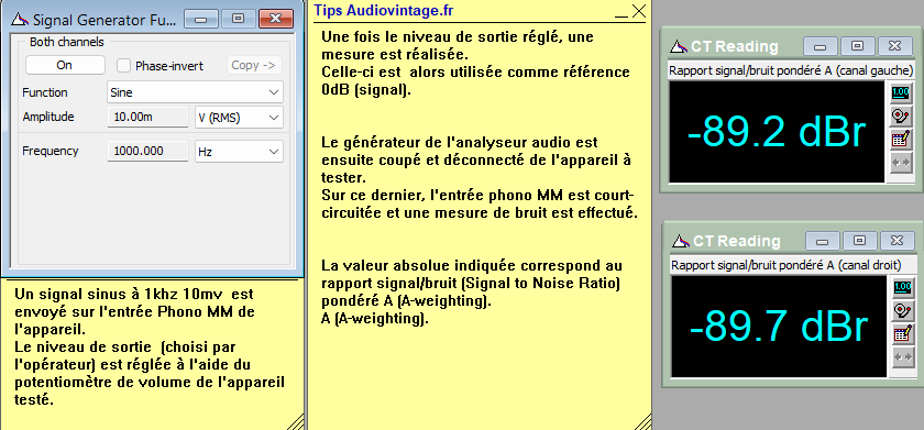 Rapport signal bruit à 6.5vv en sortie, entrée phono.