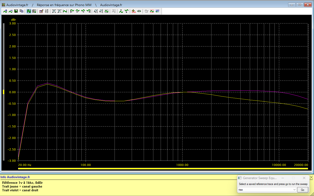 Réponse en fréquence à 1v en sortie, entrée phono.