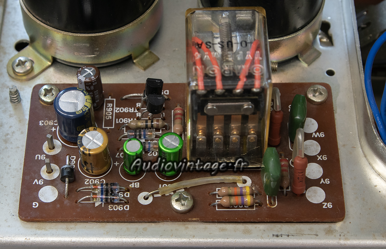 Le relais est démonté et ses contacts désoxydés. Condensateurs chimiques et transistors neufs.