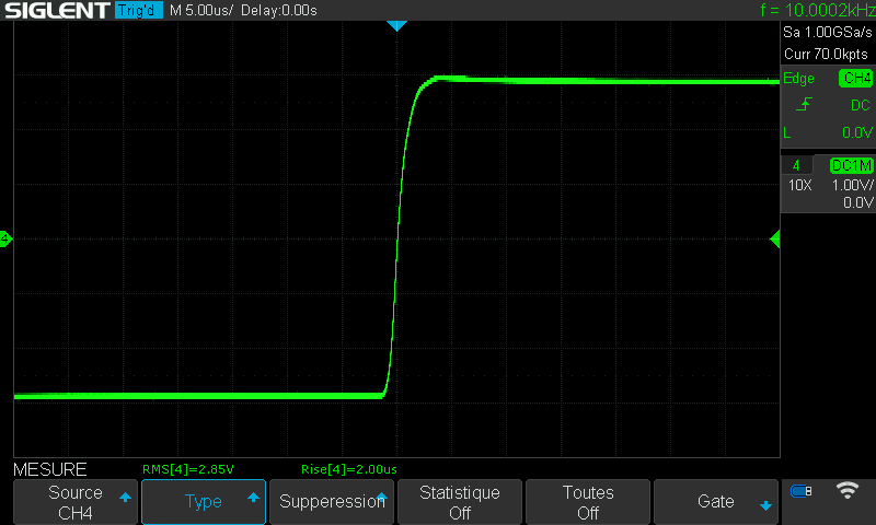 Signal carré à 100hz, 1khz, 10khz et temps de montée à 10khz. 1w en sortie sous 8 ohms, entrée aux.