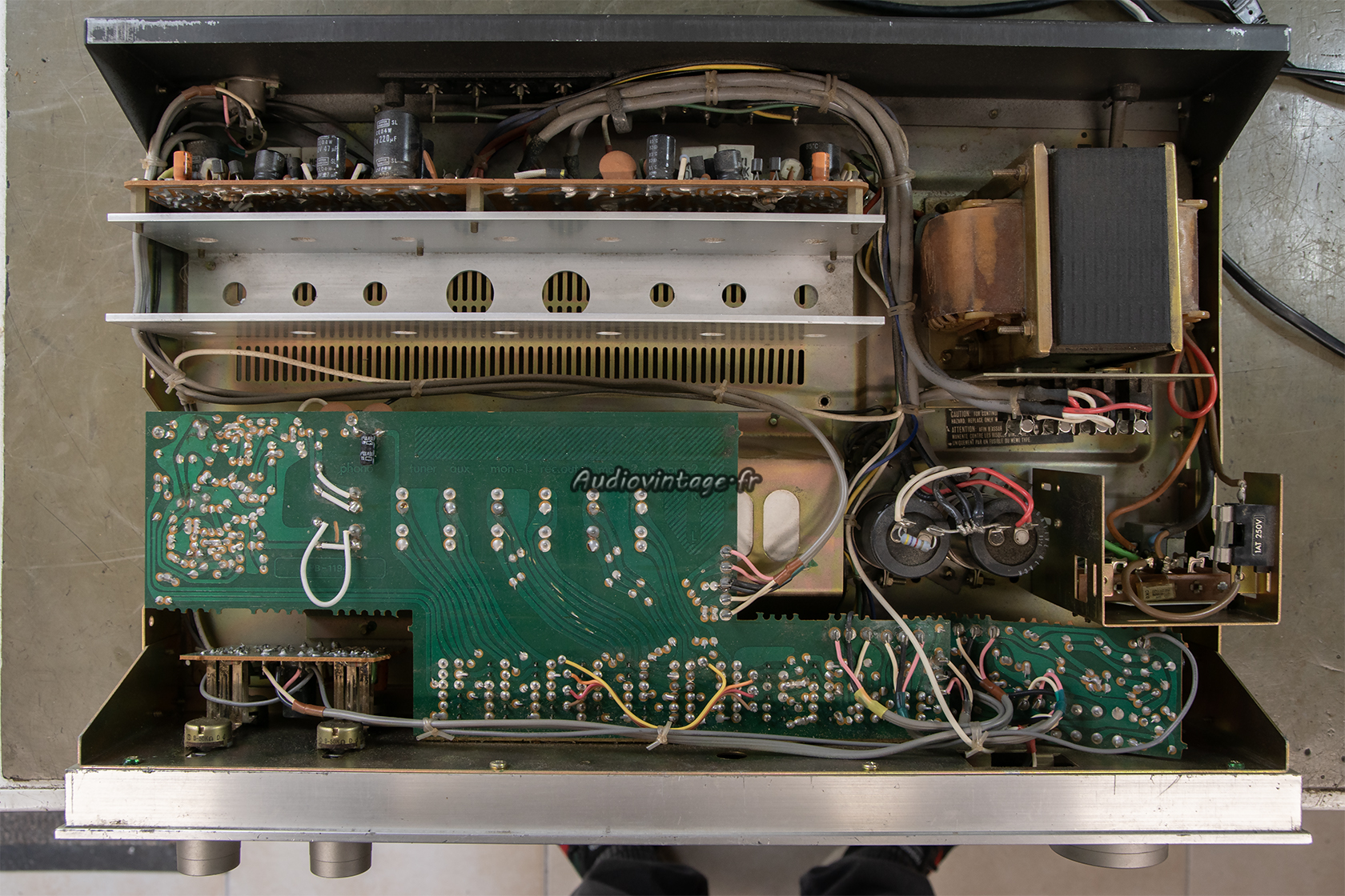 Les deux condensateurs Y Rifa sont remplacés et l’alimentation de l’appareil est modifiée en 240v en lieu et place de 220v.