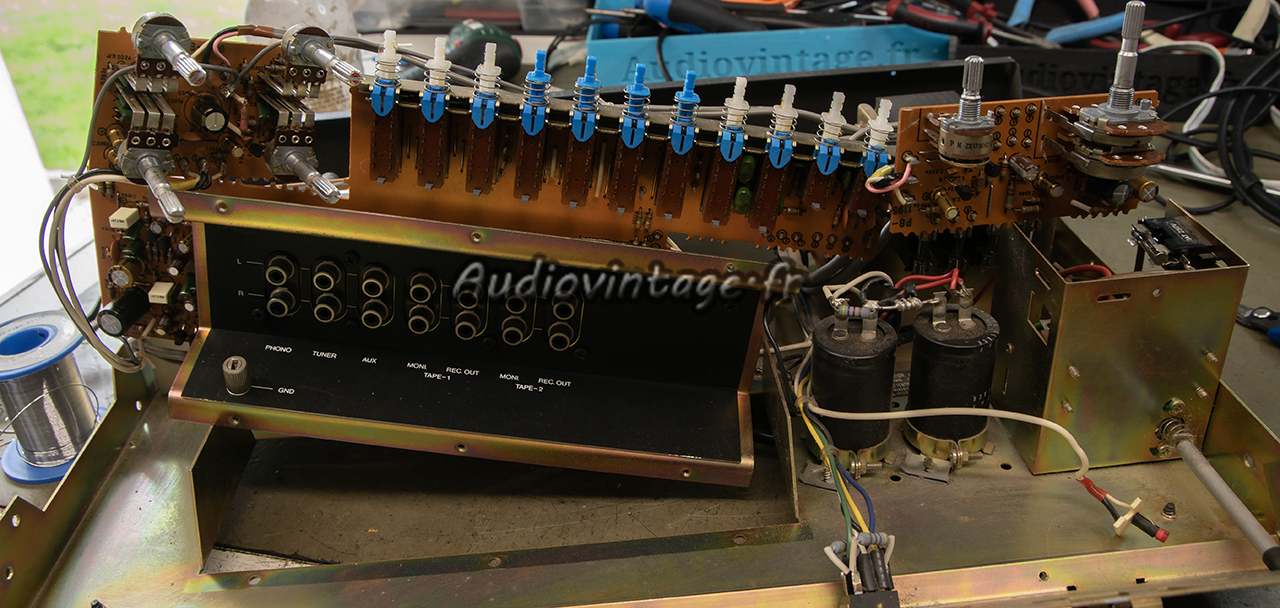 Les commandes sont nettoyées, les soudures des potentiomètres de tonalité sont refaites.