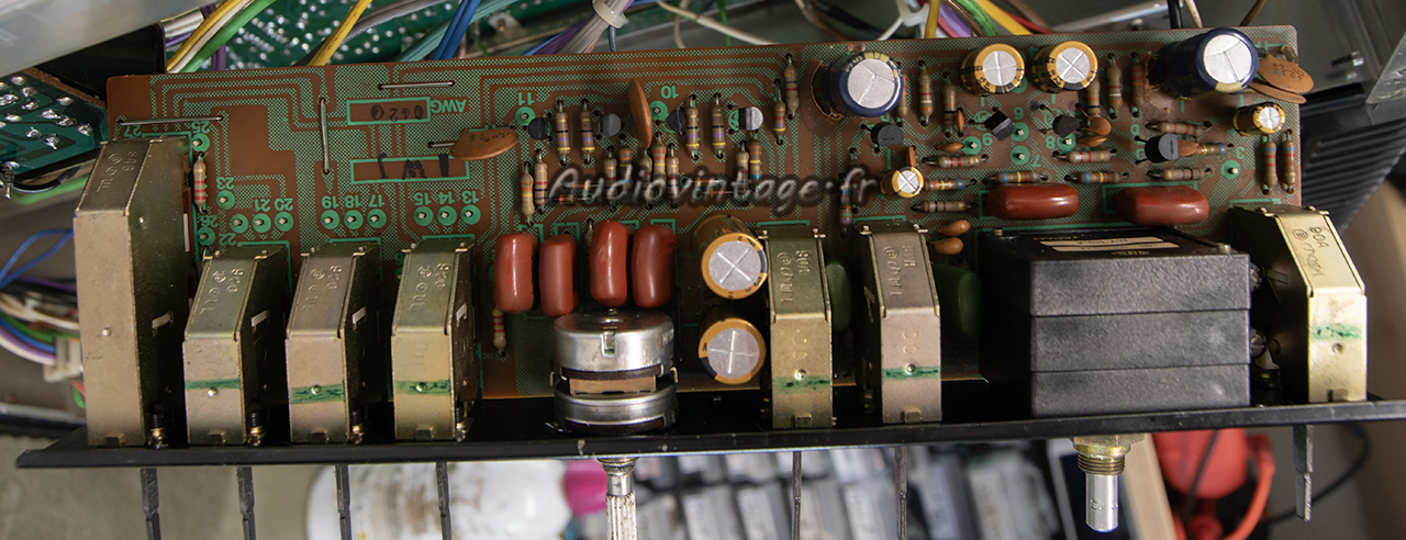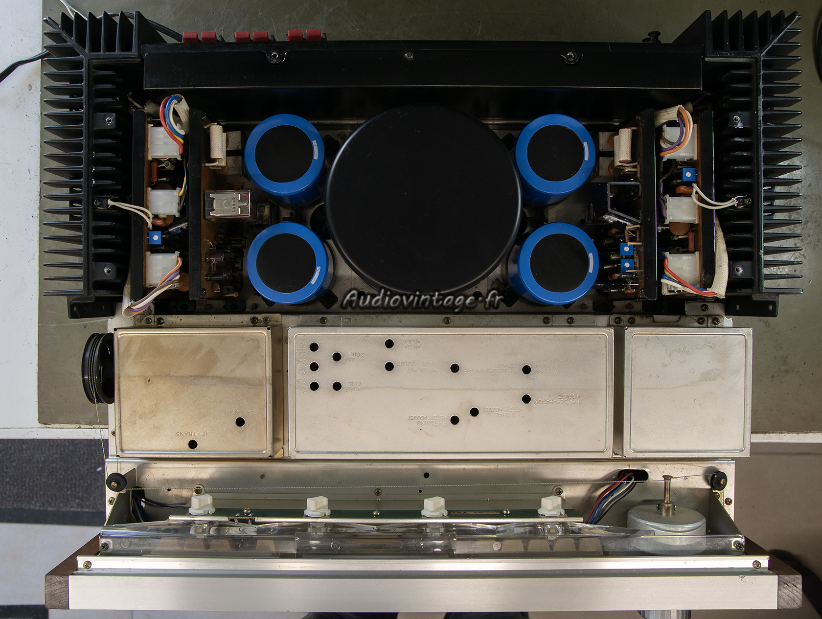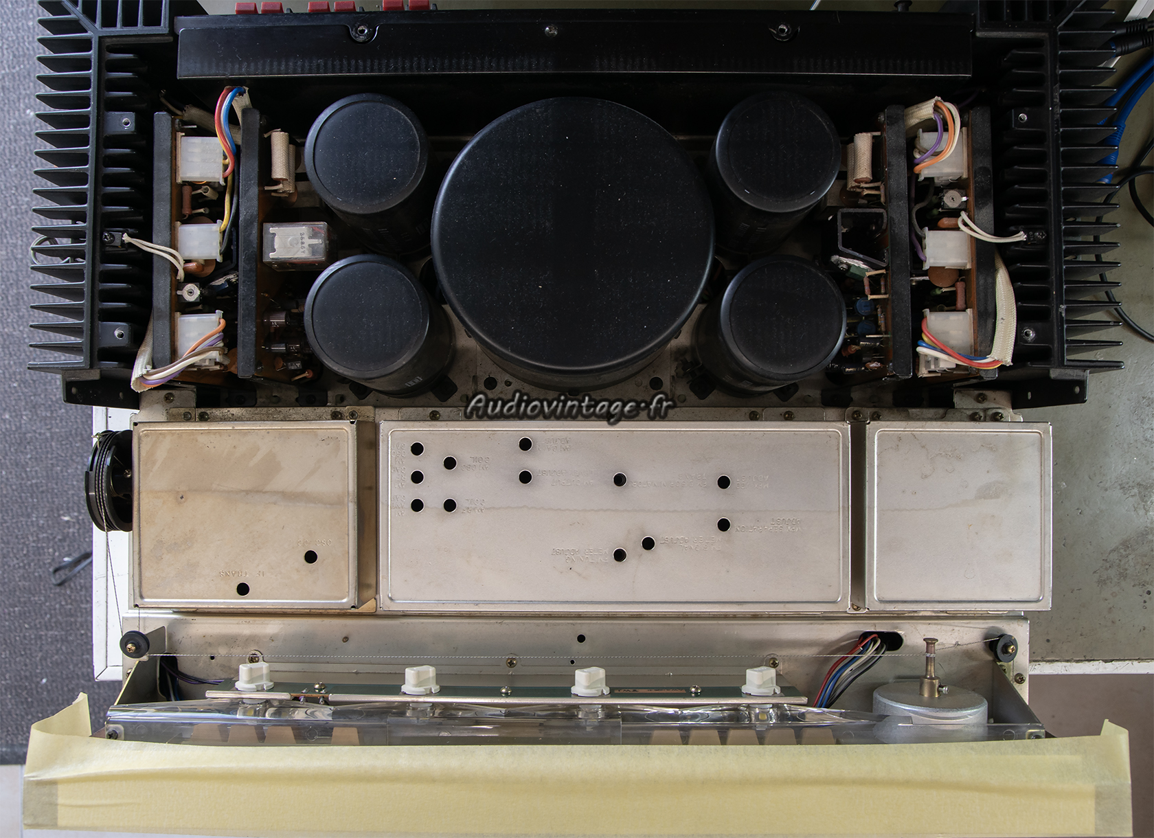 Les condensateurs de filtrage sont remplacés. Les commandes ont été nettoyées lors de l’intervention. Les nombreux réglages (tensions d’alimentation, courant de repos, offset) sont réalisés.