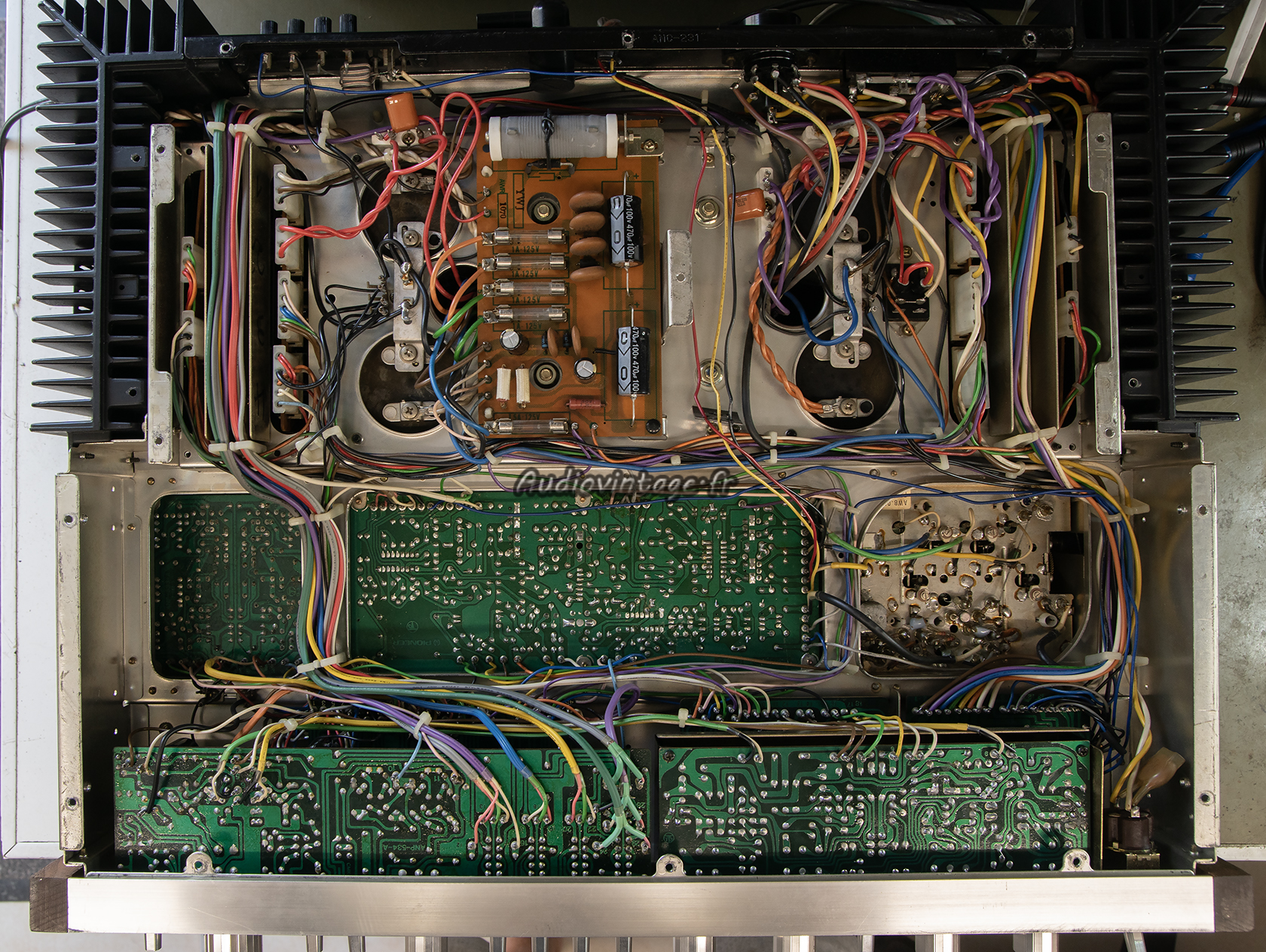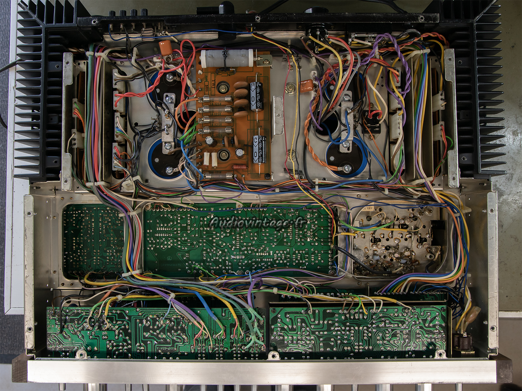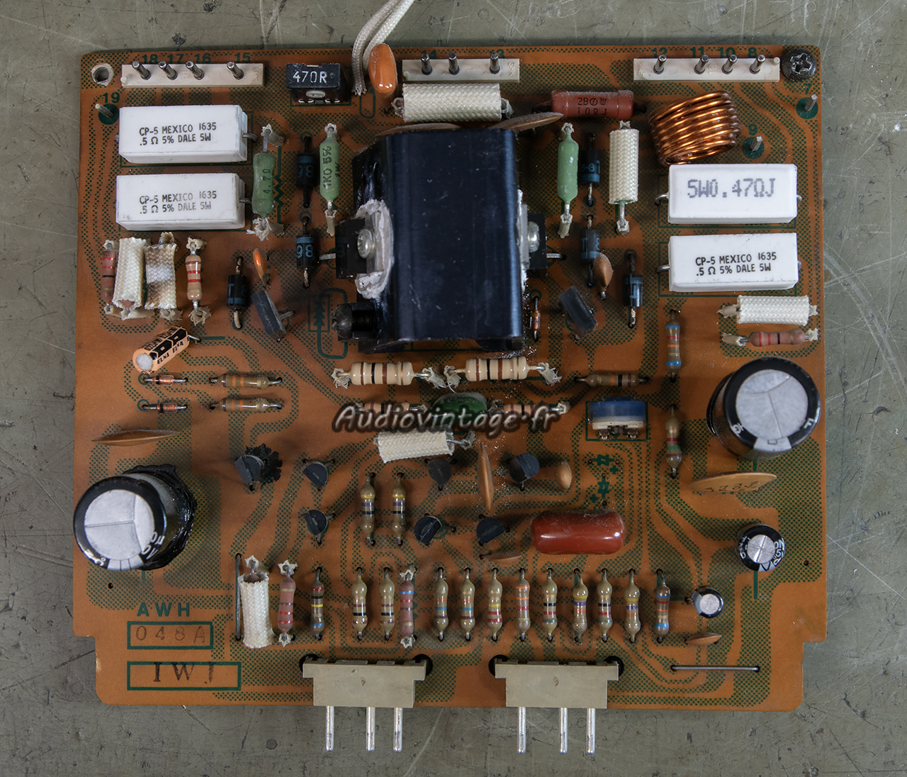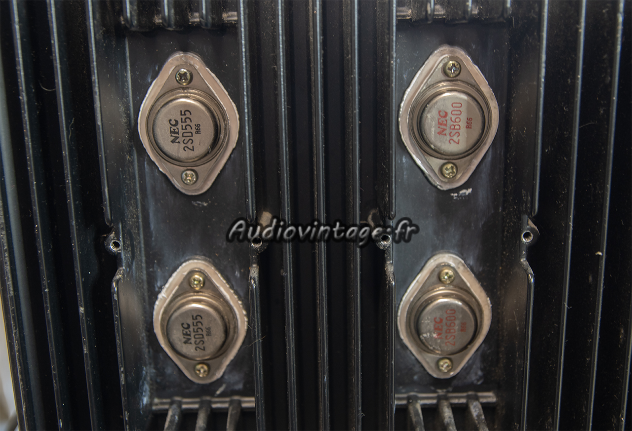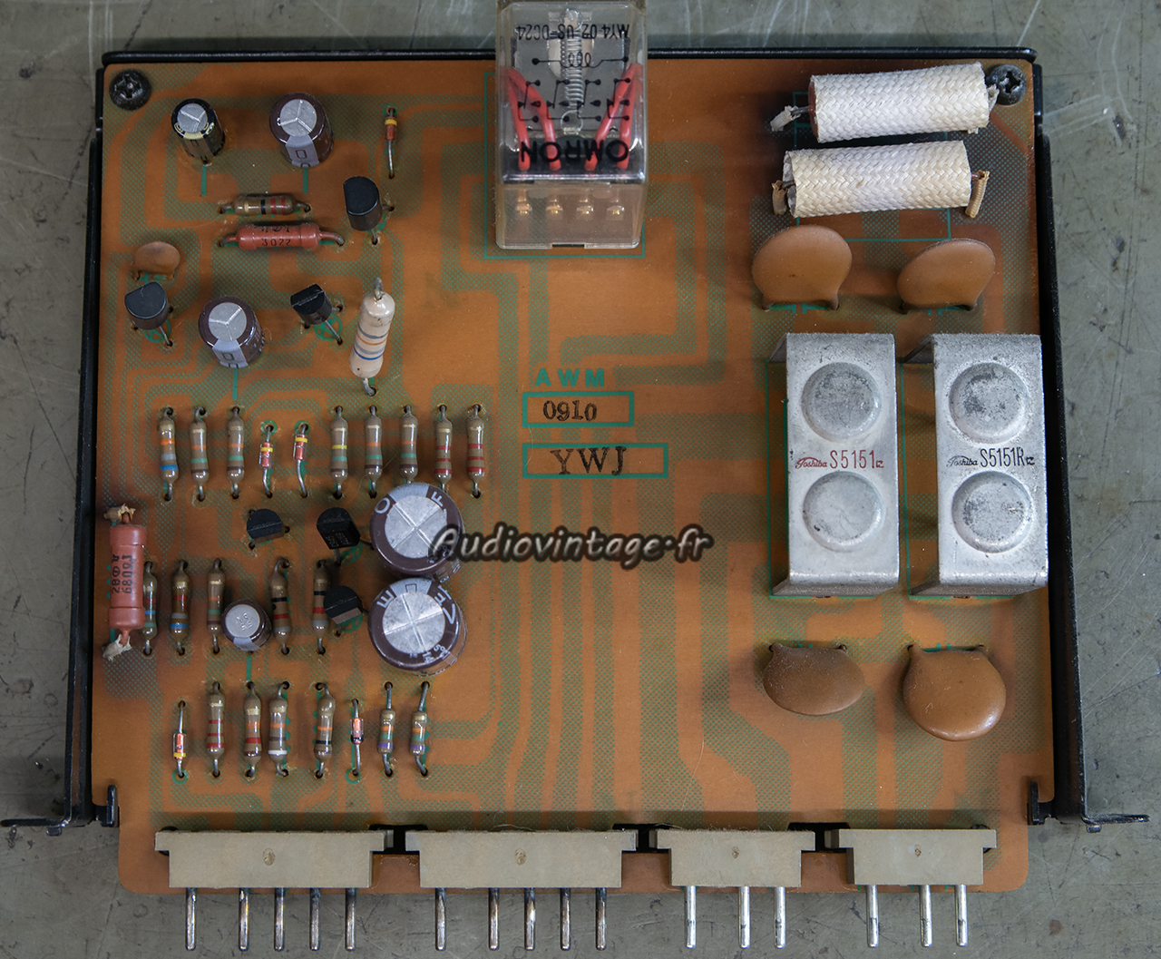 Il a déjà eu droit à un nombre inconnu de réparations, la dernière étant une intervention sur le circuit d’amplification droit (tient donc…) avec le remplacement des transistors de puissances et de nombreux composants sur le circuit driver correspondant.