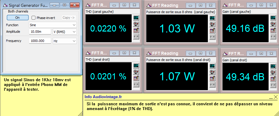Les mesures sur entrée phono :